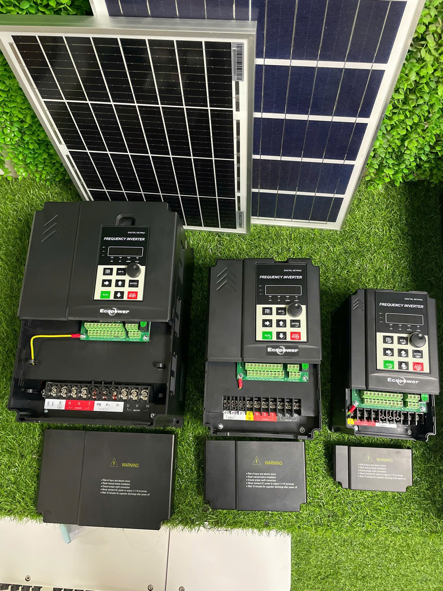 EcoPower EP15-SP1S-5d4 là biến tần chuyên dụng cho hệ bơm nước năng lượng mặt trời, tích hợp MPPT để tối ưu công suất từ tấm pin,
